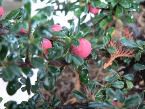 I know, it’s not a bloom. But it was, at one point. 🙂 Got this Cotoneaster microphylla at a CCSF plant sale, and put it in a small pot to keep it as a bonsai.