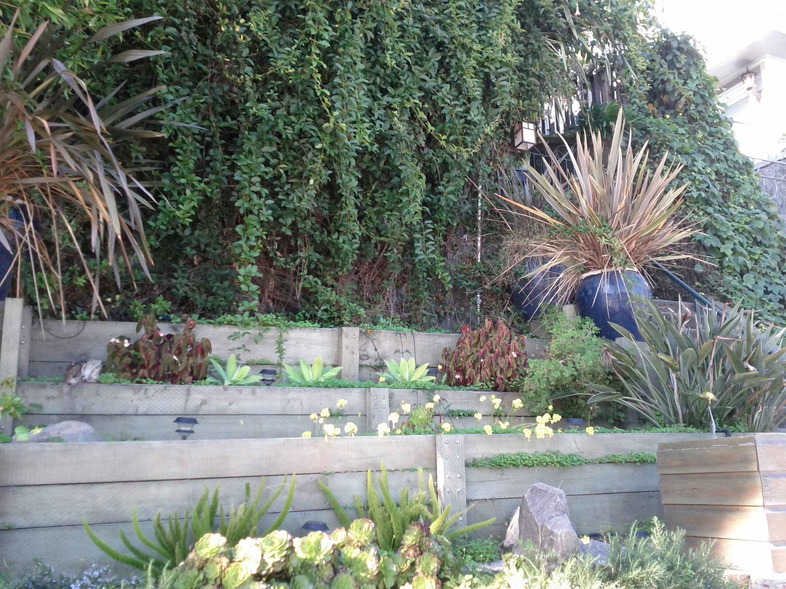 Neighboring garden on Sanchez at bottom of steps. Love the combo of succulents and Begonias!