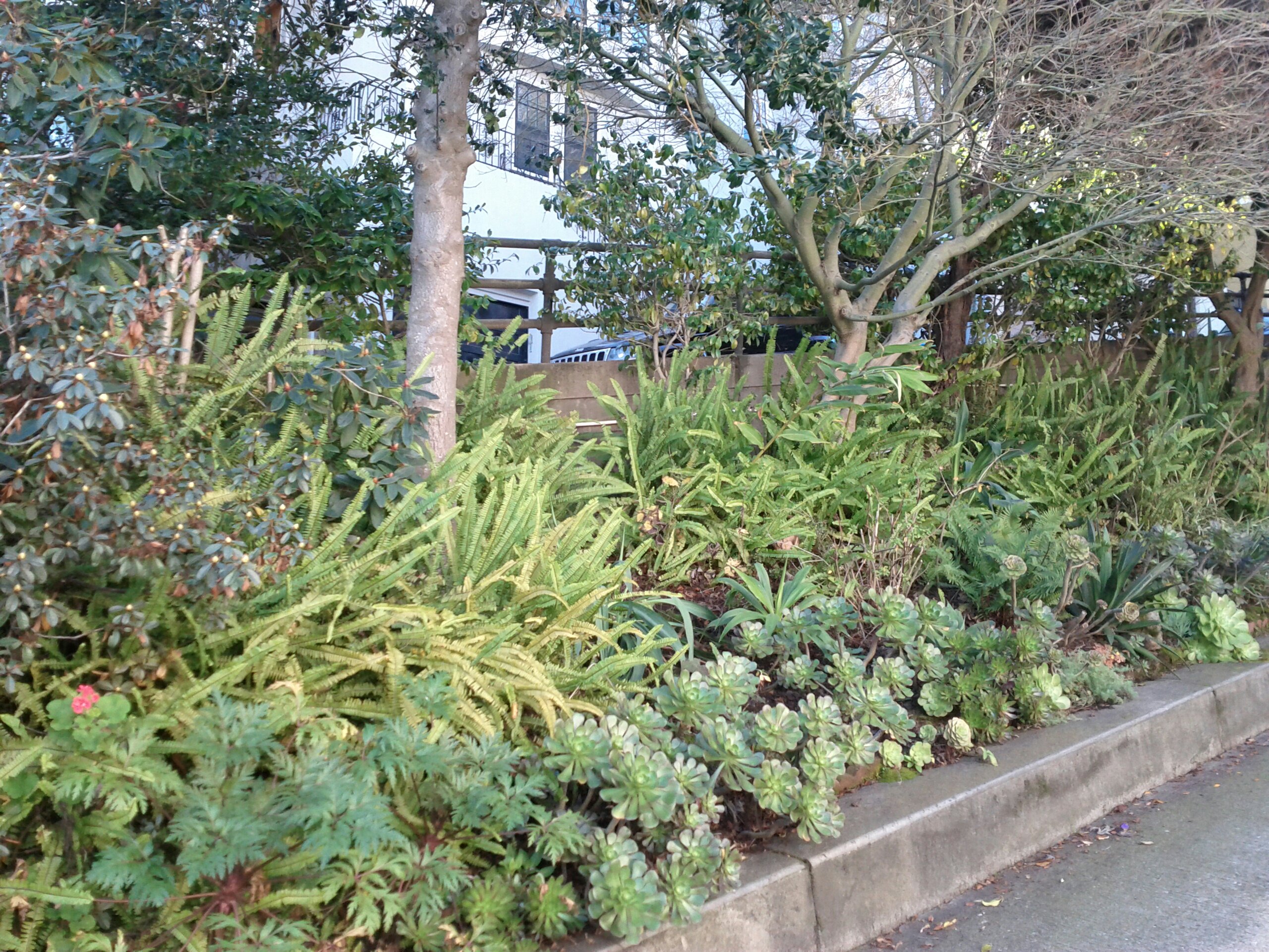 Succulents and ferns happily cohabiting.