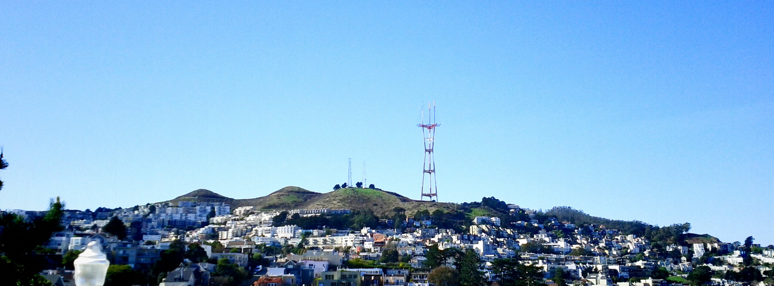 View to Twin Peaks and Sutro Tower, west from the top.