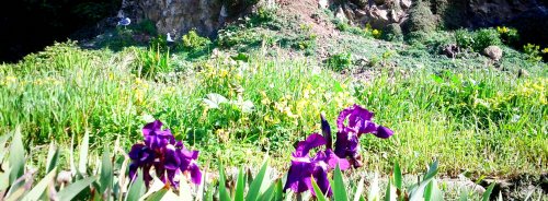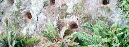 Ferns and Jupiter’s Beard among granite blocks, east side of Alcatraz