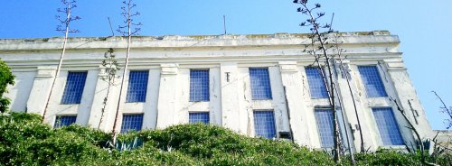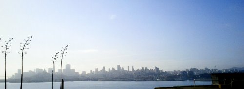 Agave flower stalks breaking the SF skyline from the top of Alcatraz
