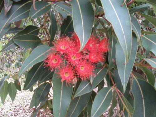 Big looming sand dunes towering over the houses, and all I came away with was a vial of sand and a picture of a flowering Corymbia ficifolia tree. Hmm.