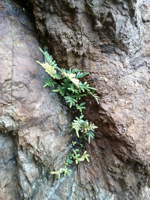 Another fine chunk of twisted chert, covered in blowing sand (the Avenues would naturally be 100% sand dunes). Phenomenal views north across the strait, east to Twin Peaks, west to the Farallones Islands, south to the horizon. Amazing. Beautiful native plantings being introduced to replace the invasive ice plant that is so ubiquitous up and down our coastal dune communities. Native ferns clinging to life in a rock crevice… Native Sedum species in a quarter inch of soil… Sticky Monkey Flower planted on the slopes…