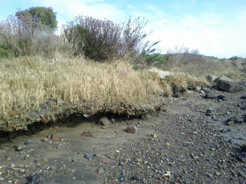 The hillsides on both sides of the Golden Gate are riddled with old batteries and bunkers. Batteries as in cannon or gun mountings, not as in 9-volts. Godfrey is immediately west of the bridge toll plaza, and can be reached on foot from the parking lots right there at the bridge. The hills were carved up to make places for them, so the rock exposure is pretty excellent. Not to mention, the cliffs themselves are constantly being eroded by the waves and fast-moving currents through the strait below. Good, loose rubbley soil, saturated from a few days of intense rains, being undercut by the waves. Perfect place to hang out and see what geology is all about.