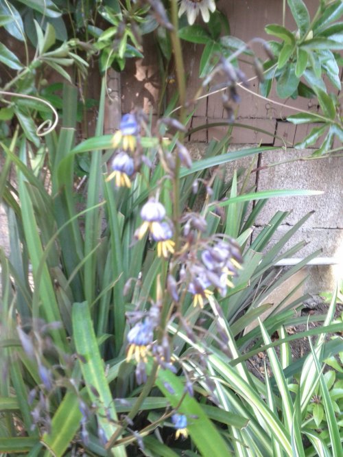 Grass-like Dianella tasmanica in bloom.