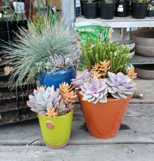 Potting up some compositions for sale at work at Flora Grubb Gardens.