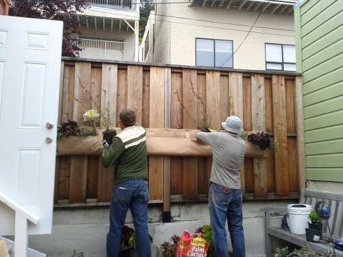 Recently a friend called on me to help with an installation, since I’ve had much more experience than he in hanging Woolly Pockets. John Alexander is one of the two gardeners for Laguna Honda Hospital here in SF, and does his own gardening biz on the side: JGA Garden Designs.