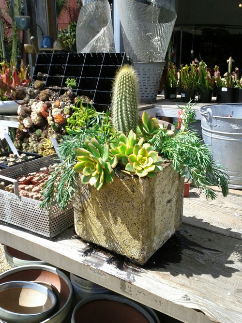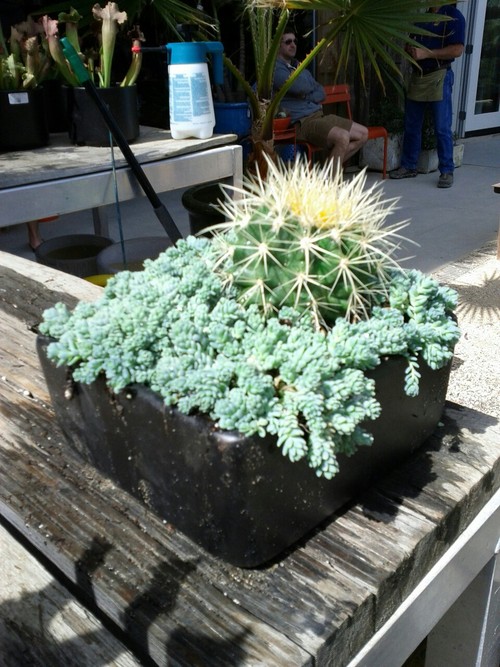 One of my Flora Grubb Gardens compositions. Shoulda waited a coupla days to take the pic, since the Euphorbia was a little stressed from the de-rooting it needed to get all up in there.