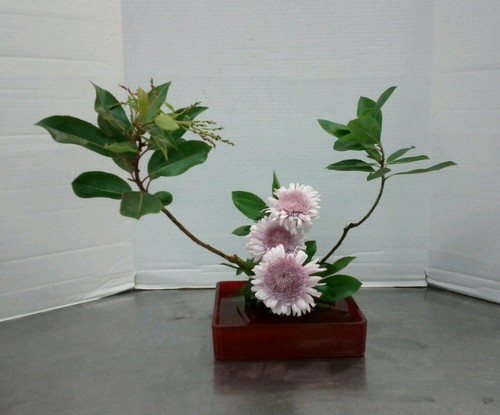 Slanting Moribana, Variation #3. Arbutus ‘Marina’ branches, and the flower is Argyranthemum frutescens ‘Madeira Crested’.