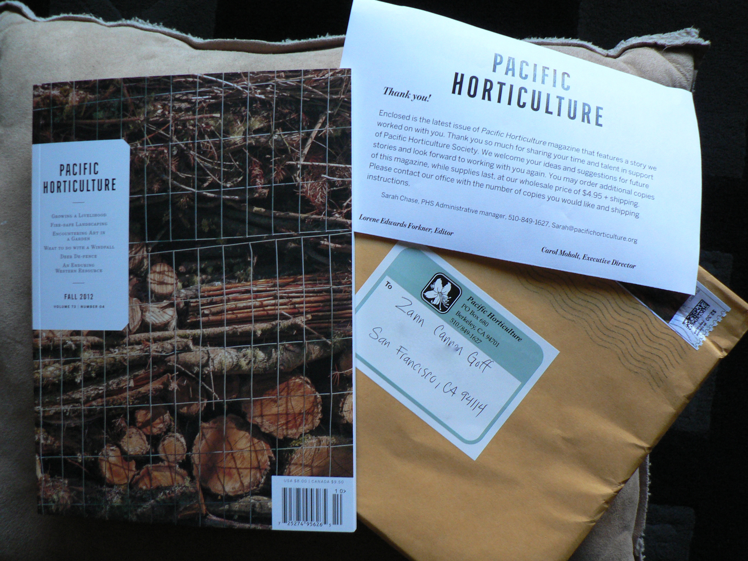 As I wrote about last May, an essay I wrote about my experiences in the Gardens of Alcatraz landed a place in the Fall issue of Pacific Horticulture magazine. A few months and a couple edits later, it’s finally arrived! A few friends had received copies earlier so I was anxiously awaiting my own copy, and yesterday was the day.