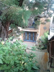 On the recent Portola Garden Tour I spotted this lovely blue column supporting a blue agave as a focal point.