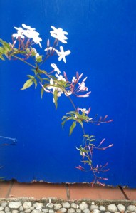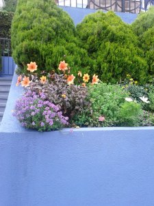 I’ve taken many shots around the area in the past couple of days, to capture instances of blue. Blue pots, walls, plants, in the varying lighting of the different times of day. I want to show how blue can play with the other colors in the garden. It can be a focal point, or it can help set off a focal point. If you look at how it interacts with your other colors you’ll see how you can integrate different shades to change the feel and mood of your garden!