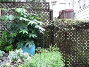 A splash of blue draws your eye right to my Japanese maple. Planning to paint this fence teal, then look out!