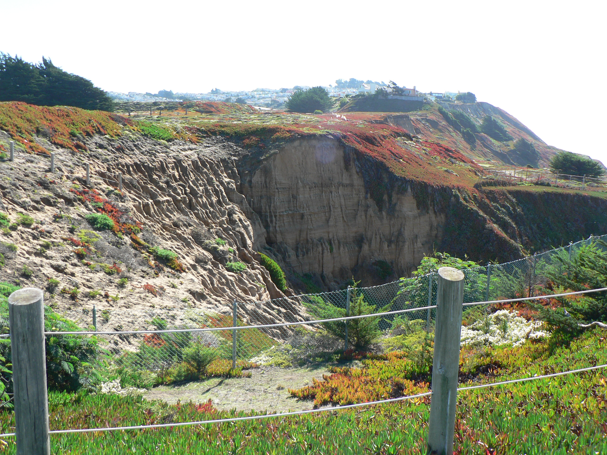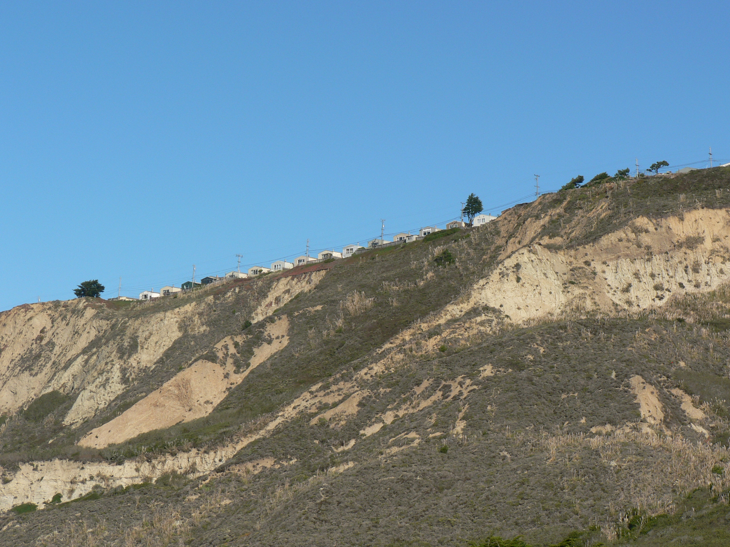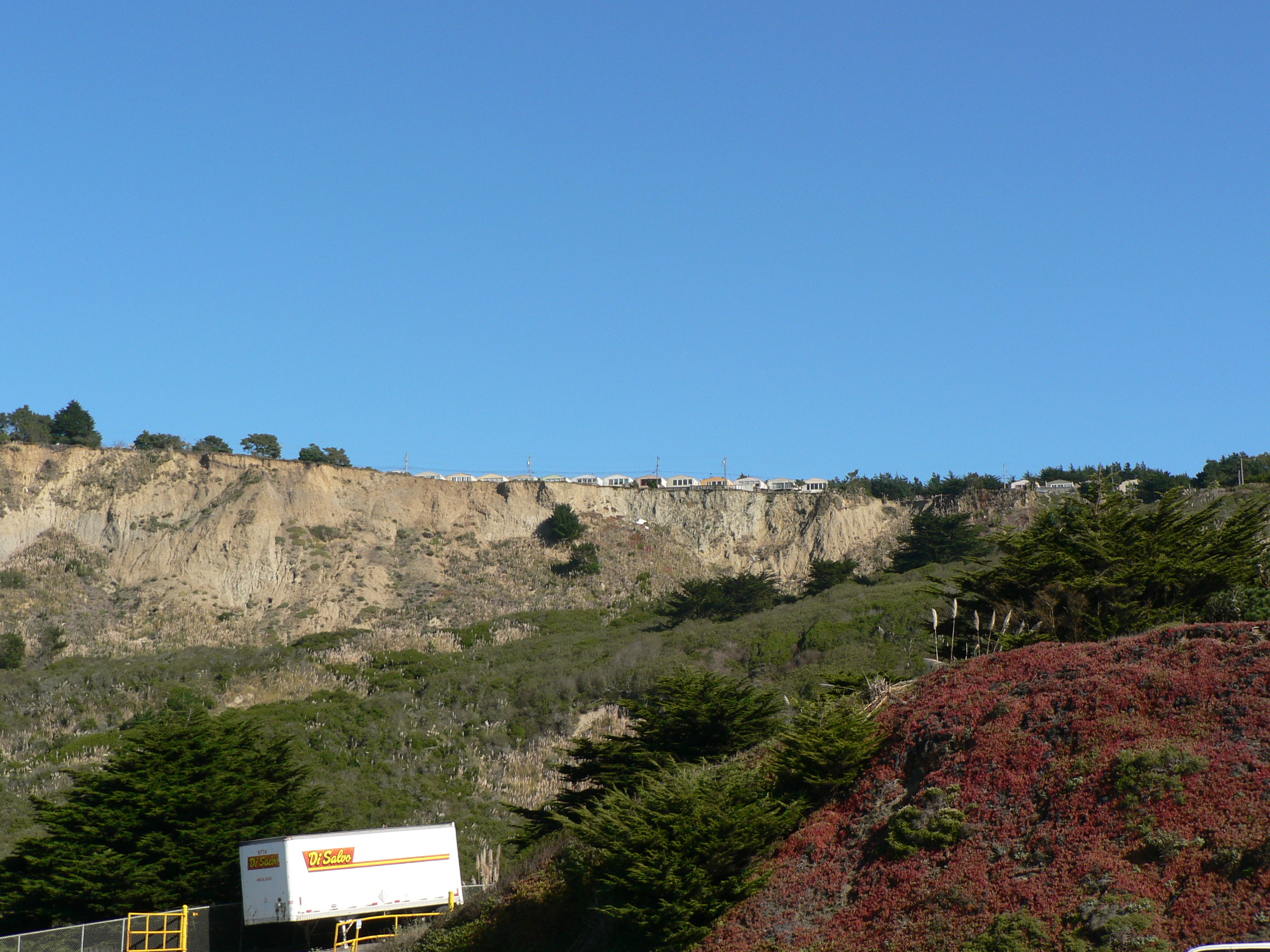 Besides the precarious positioning, the residents are also directly below the flight path for SFO. Danger and noise. Whee. Way to enjoy the coastline.
