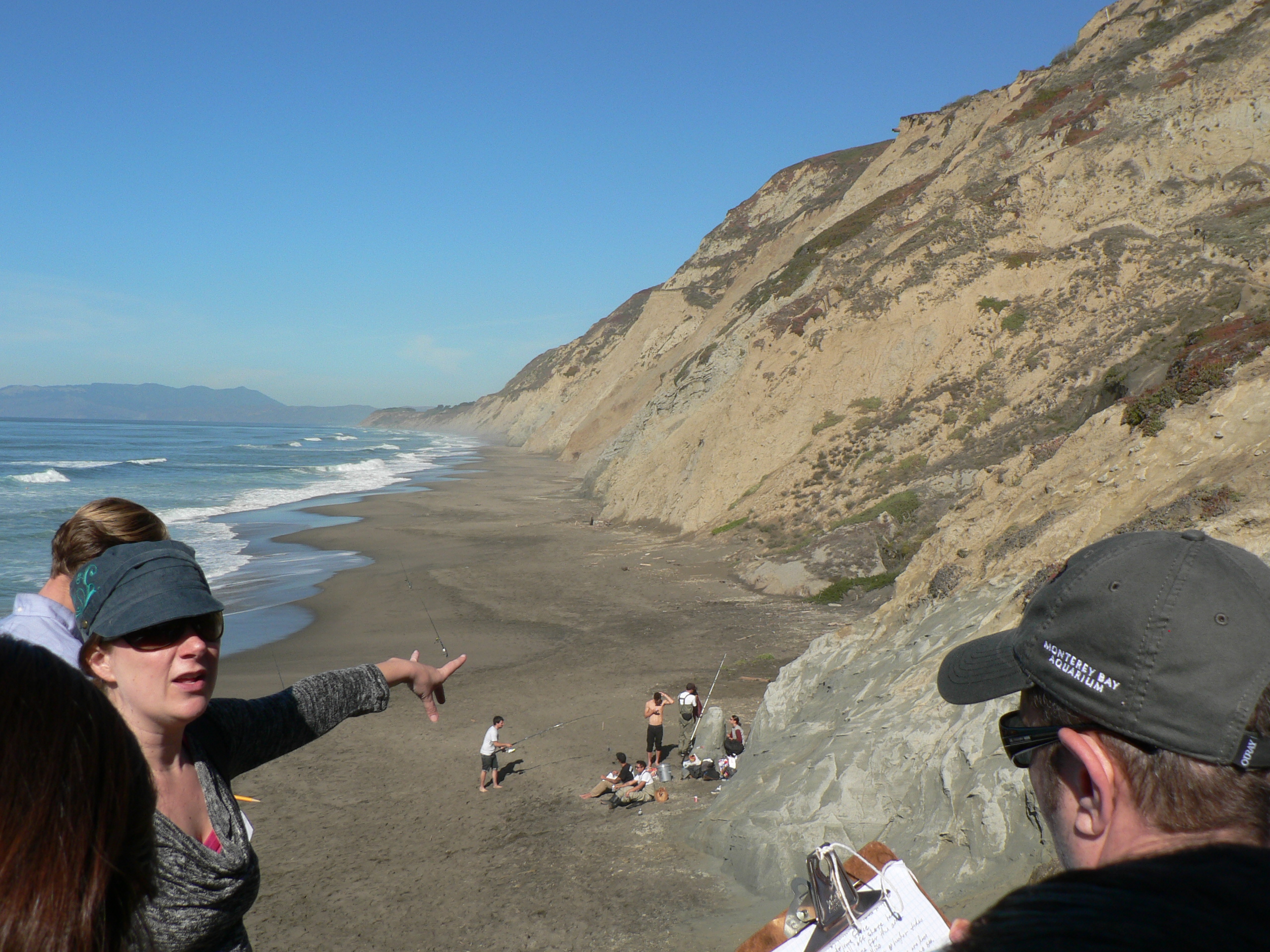 On this field trip we started off in SF at Ocean Beach, across the Great Highway from the zoo. We then went south to Thornton Beach State Park in Daly City. After that we visited the spot where the San Andreas Fault hits the ocean at Mussel Rock. Our trip ended with a walk along the beach in Pacifica. Along the way we considered land composition and erosion rates, and how people manage them. We considered severity of natural hazards. We considered how climate change will affect these areas, and assessed what we would recommend if we were the decision-makers for this area.