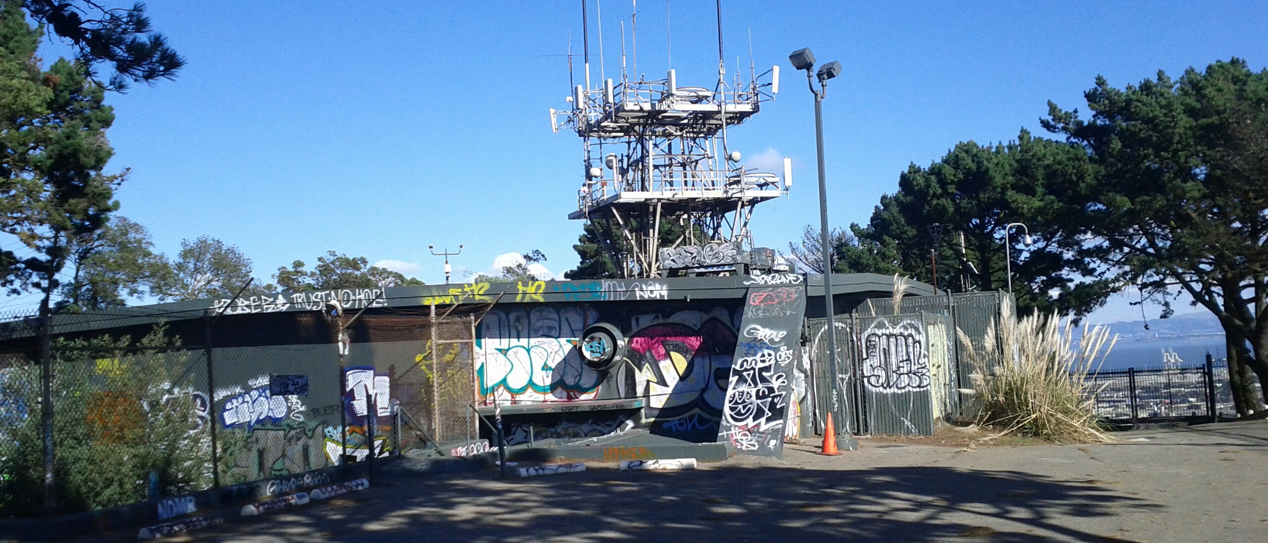 Up close with the graffiti-covered tower foundation. Lots of broken beer bottles, so watch your step.