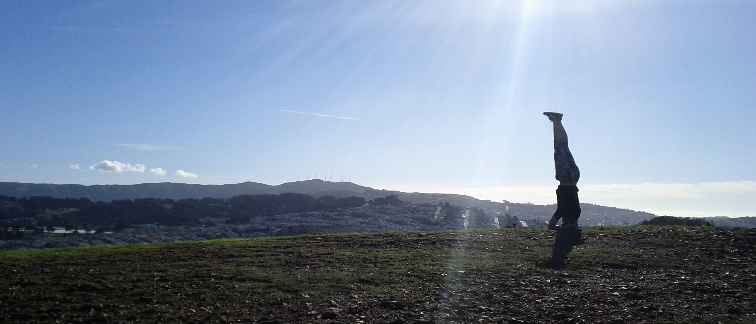 Bernal Heights Park is very popular among Urban Hike enthusiasts, and is a favorite for dog owners and walkers. People use the many staircases as a means of exercise. The sweeping 360° vistas draw visitors for the views. The sunny peaks attract yoga practitioners. It’s one of The City’s many well-used parks. Bernal tends to be one of the sunnier neighborhoods in town, given that it’s on the Bay side of the peninsula in the southeast corner of SF, but it’s also one of the windier areas (it’s open to the Alemany Gap, where wind comes blasting across town.)