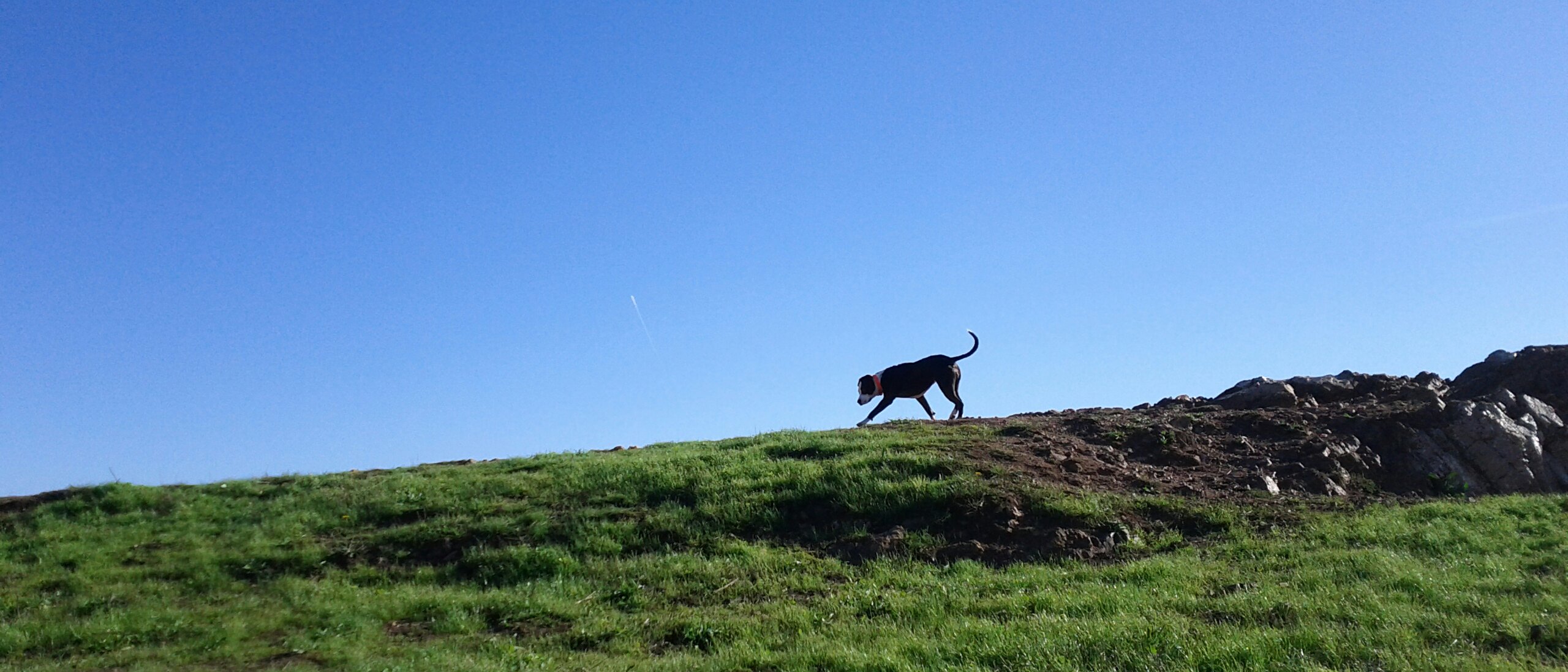 Spoon catches a whiff of something intriguing on the afternoon breeze as we descend via the eastern slopes.