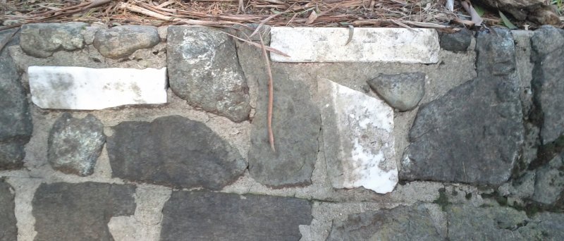 WPA walls incorporated stones and gravestones.