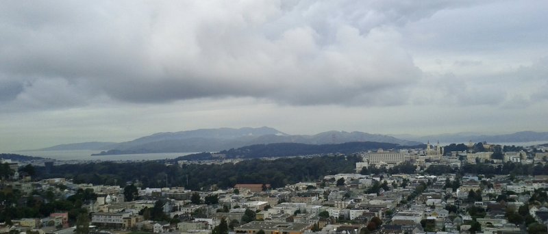 Golden Gate Park is the band of green, and the ocean is visible above that.