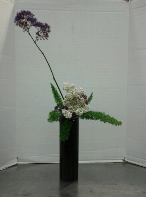 For my Upright Nageire Variation #4 I used a mix of foxtail fern with purple statice and white yarrow.
