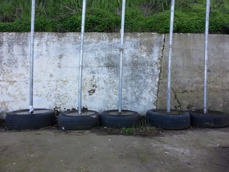 Poles left behind from the water tower construction process. I think they were part of the screening fence.