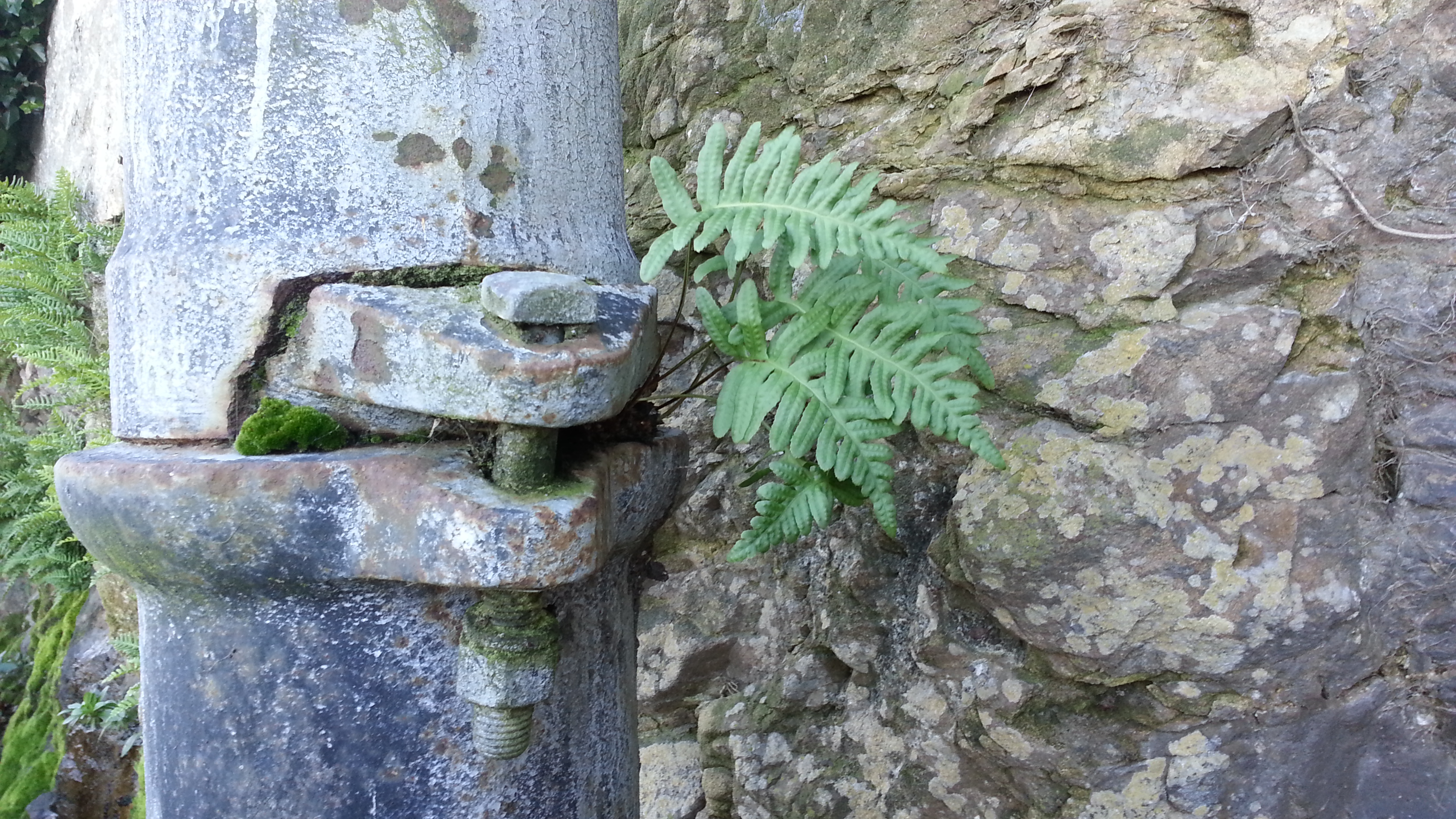 Today’s obsession was ferns growing on things. Here’s one sprouting from a joint in a pipe.