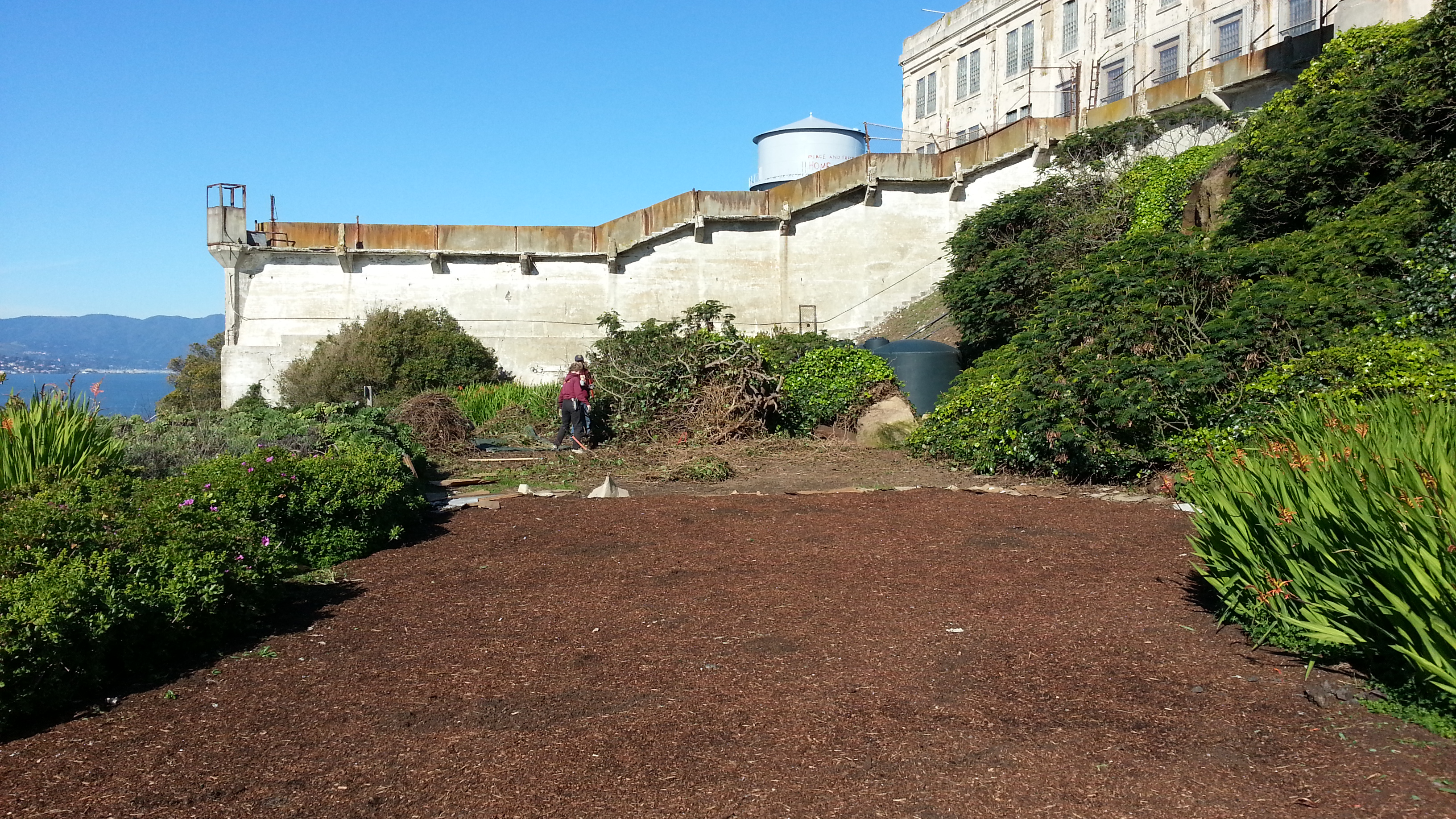 Much of the area was already sheet mulched by volunteers last week. Far side is still being cleared.