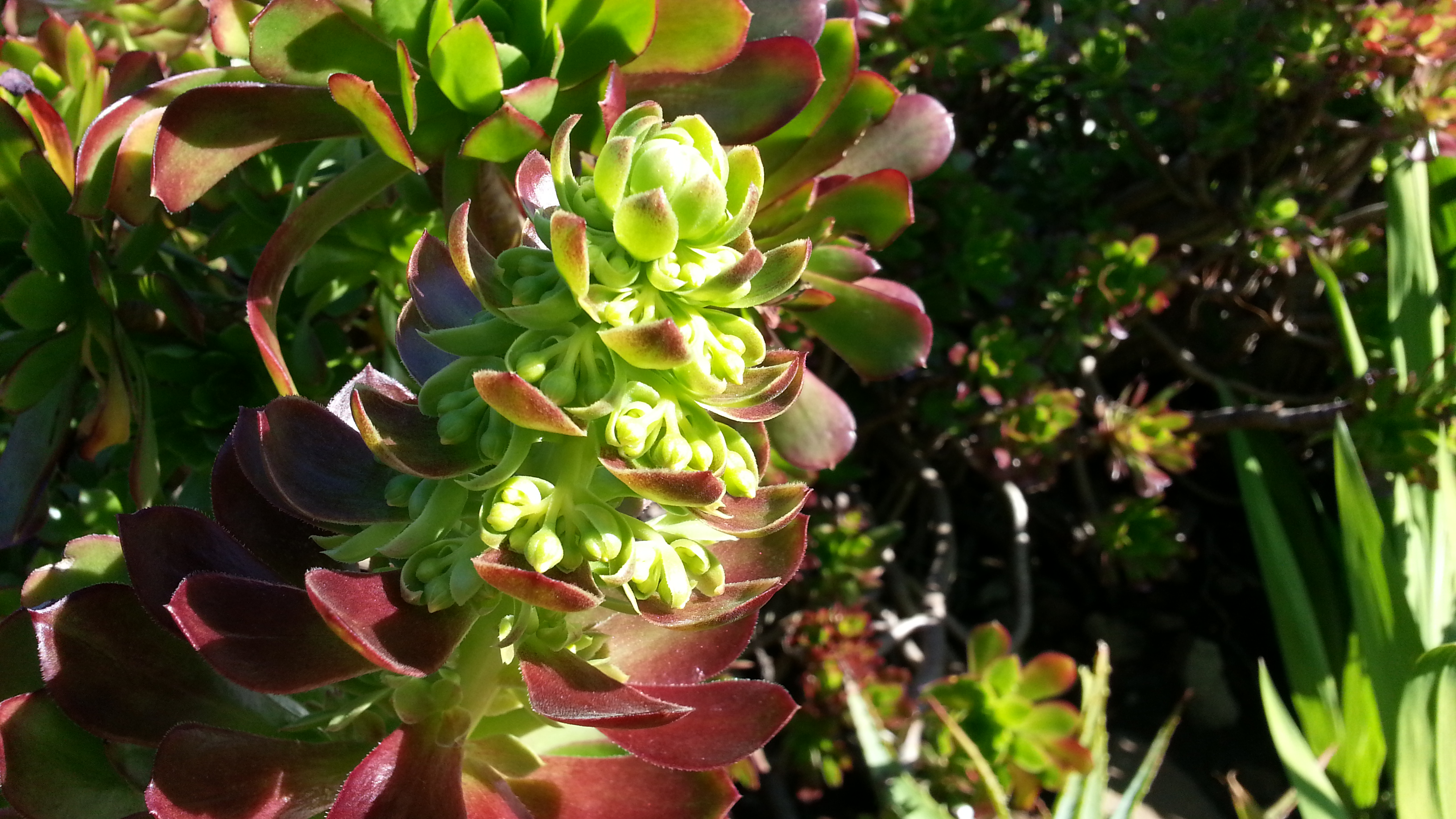 Flowers forming in a red aeonium.