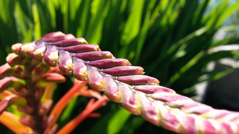 A slowly opening Chasmanthe flower in the Prisoners’ Garden.