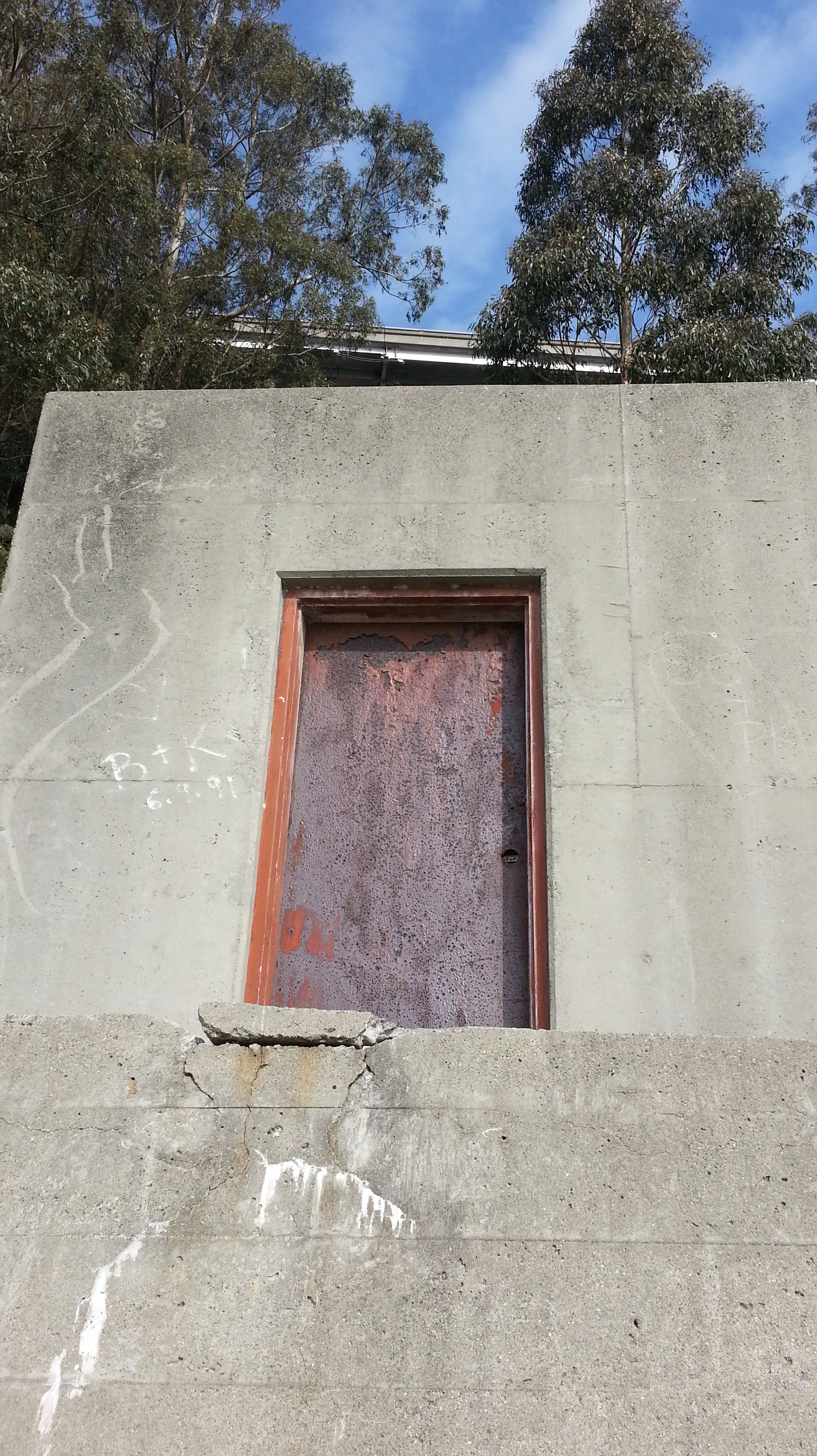 A structure at the beach where some cable were going into the water.