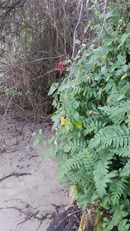 Cliff of ferns on the beach.