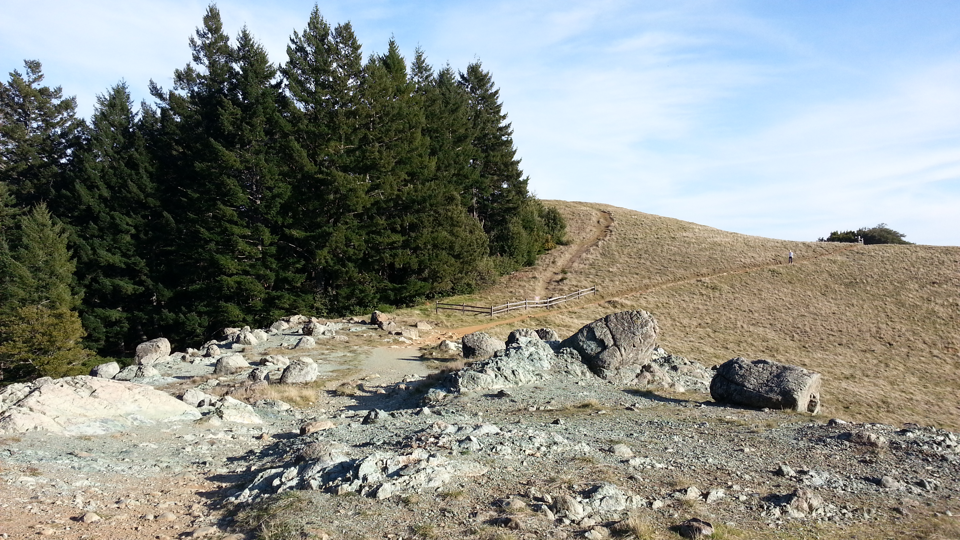 A little outcropping of the CA state rock, serpentinite. Not far to the left is the Mountain Theater.