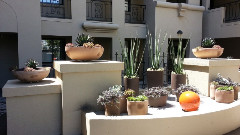 A closeup of the grouping shows how the colors blend from one pot to the next.