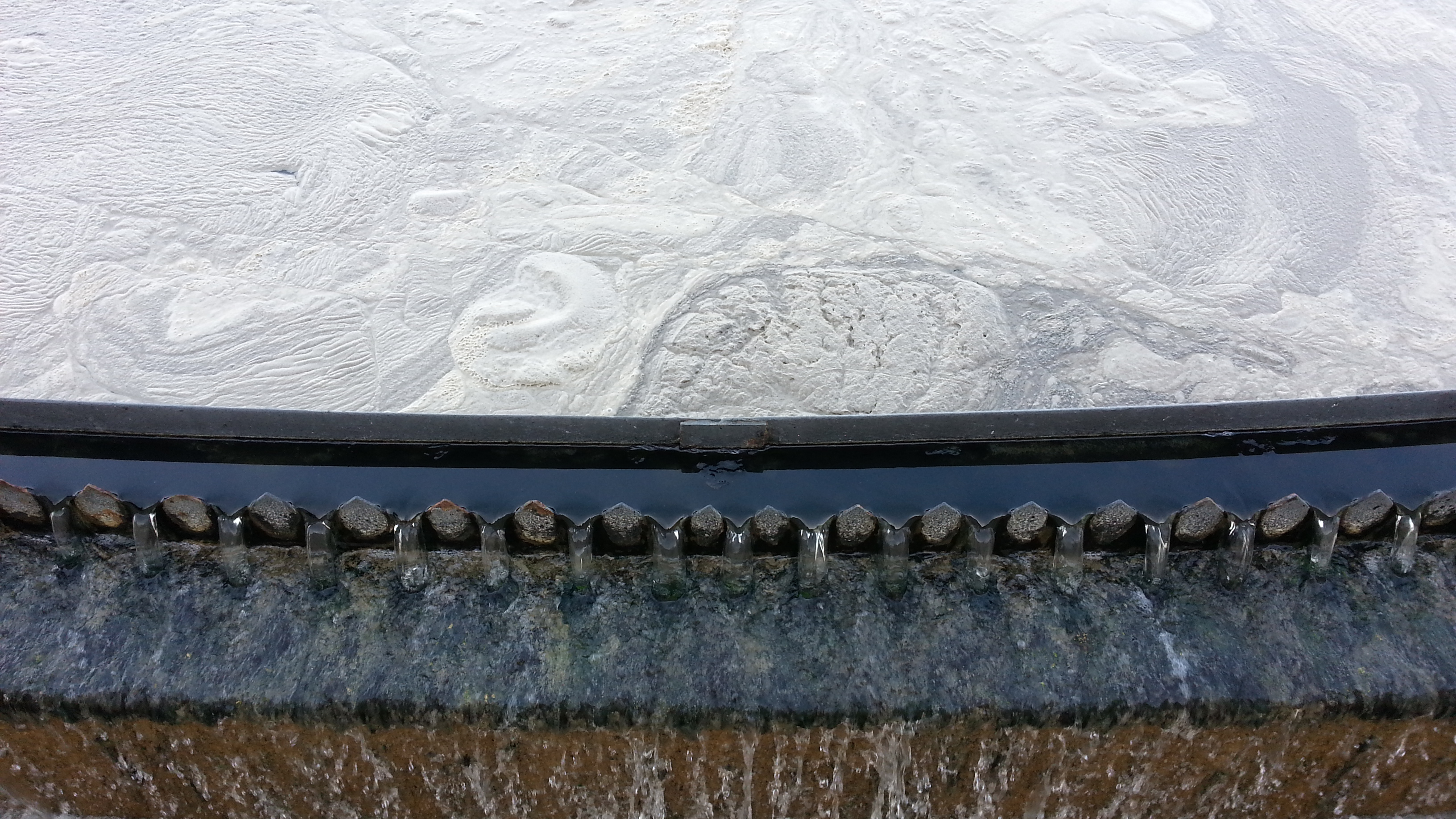 Settled-out water flows through the saw-teeth lip of a settling tank.