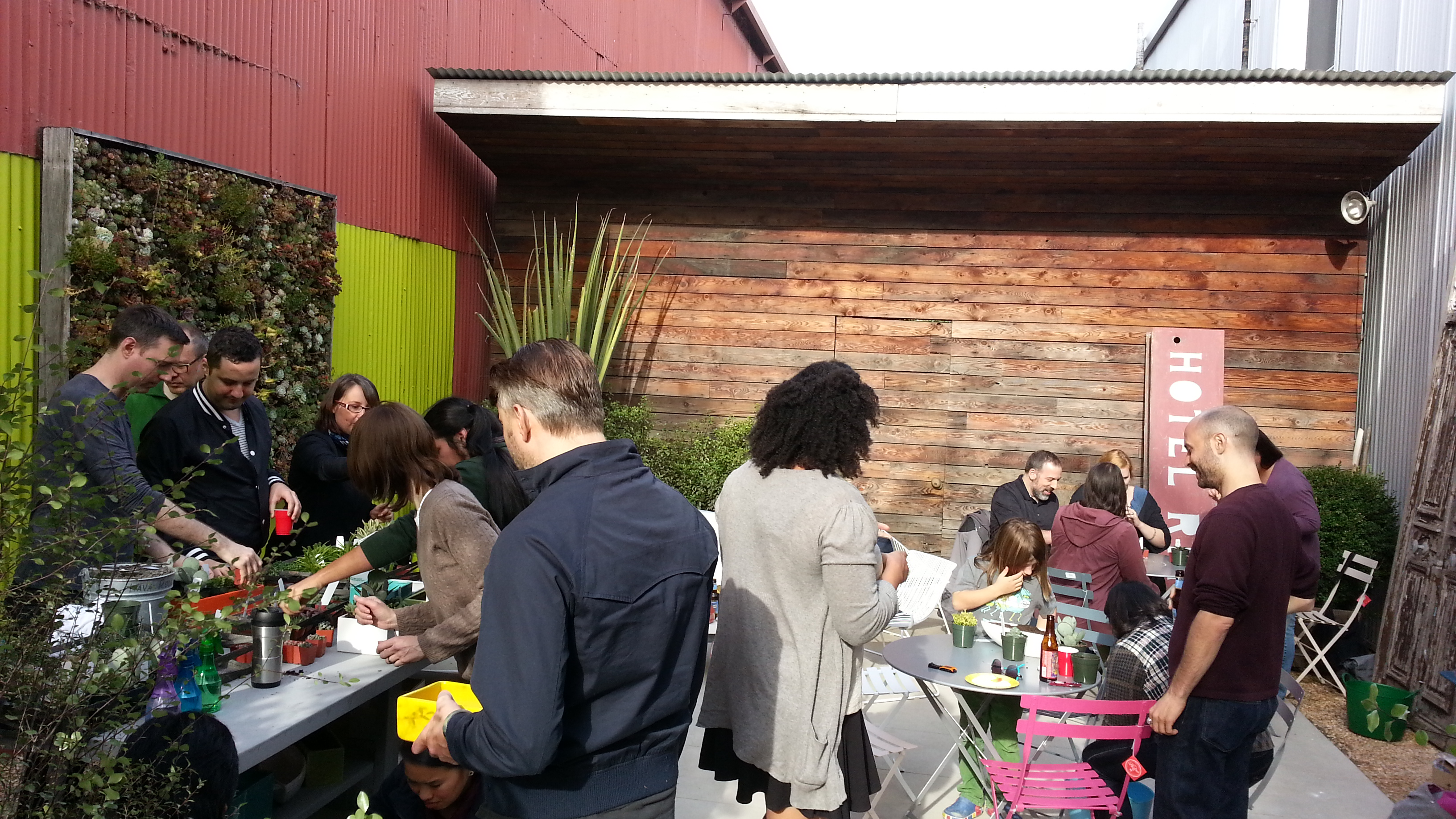 The party working in various spots around the store’s back patio. A perfect private space for a smallish group.