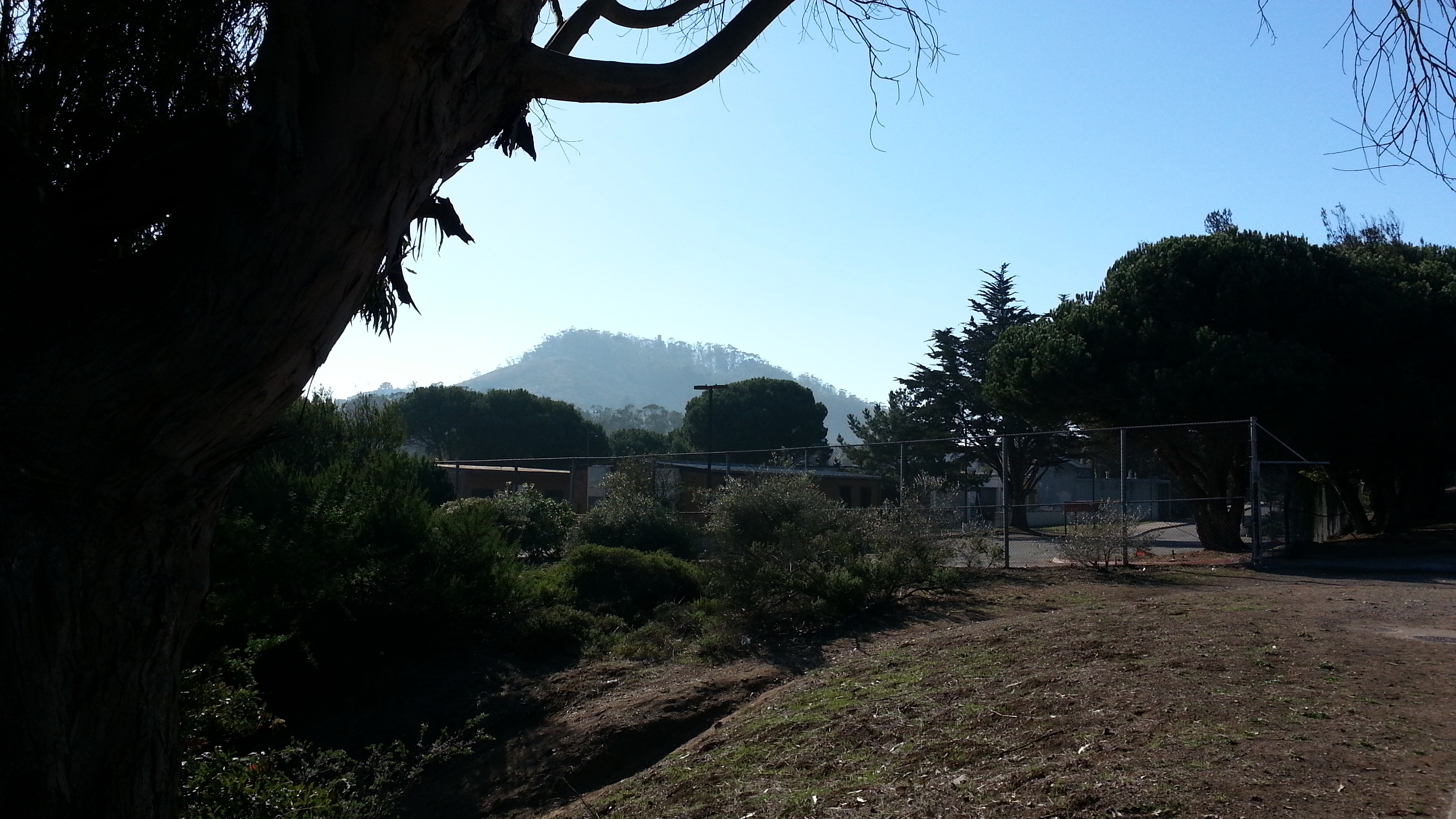 Today, the cross still stands, and if you do the Jesus thing you can go worship at it. For the rest of us, it’s just a great place to go hike for some exercise and views. The views in the forest are gorgeous and mesmerizing. This particular morning, the fog hadn’t totally dissipated, and there was a mist in the trees. The eastern side of the mountain is clear of forest, and instead is growing CA native habitat, with coyote bush, grasses, mahonia, ceanothus, and even a bit of poison oak. The views from the vista point on this side are phenomenal, even when dominated by group of picnickers and their silence-piercing herd of particularly obnoxious children running through the brush and ripping up the forest with no parental oversight. I kept hoping the signs warning to be aware of coyotes would make the group reign the kids in just a little bit, but no such luck. It’s a beautiful spot to linger, so you can’t blame them for going and bringing the kids to burn some energy outside. At least they’re enjoying the outdoors. 🙂 I can be such a curmudgeon sometimes.