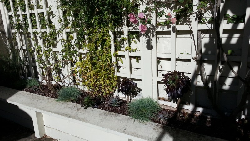 AFTER: Fescues and succulents under the vines.