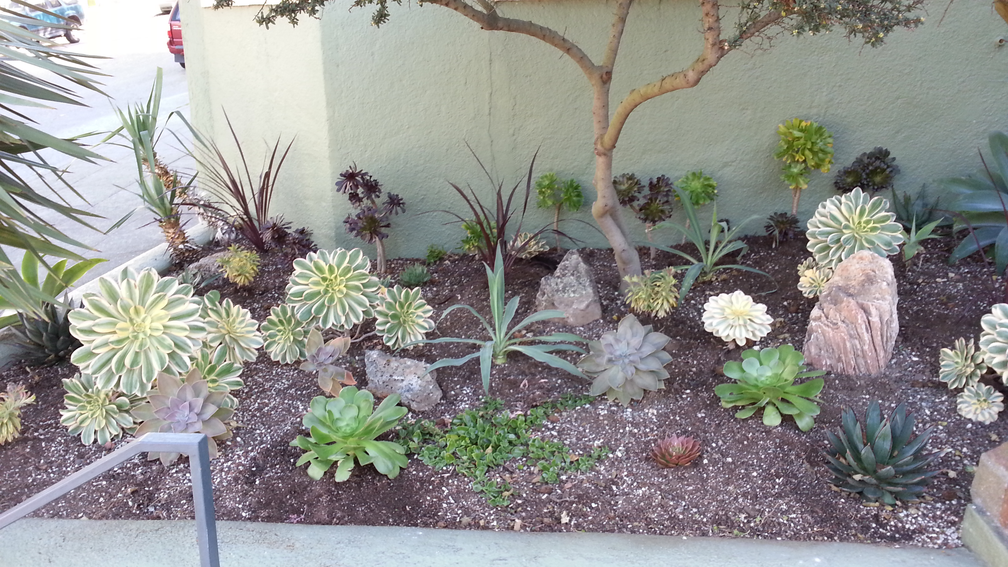 Some rearranging gives a little more prominence to a beschorneria (center), and the cordylines fill in behind.