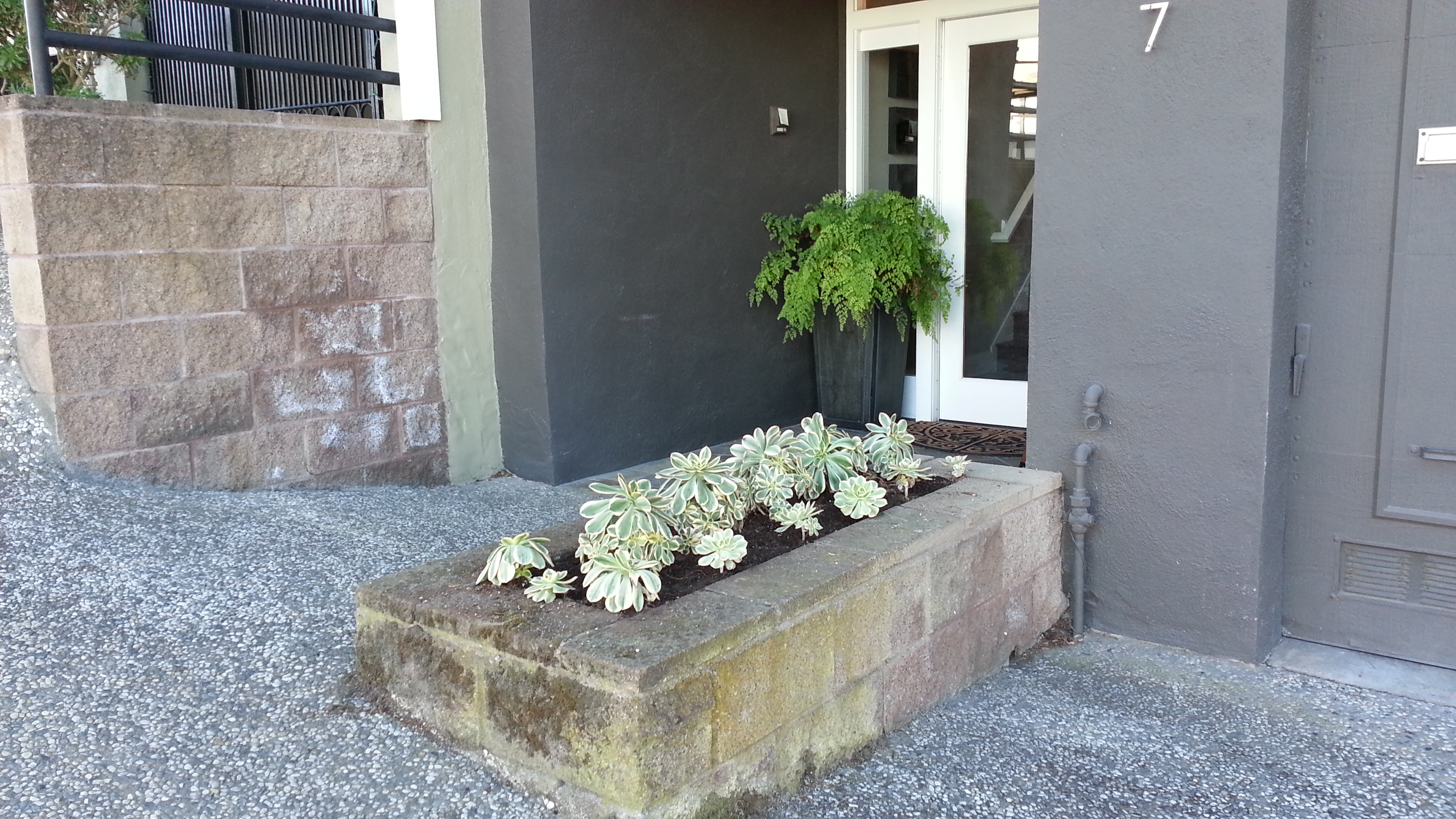 After: Aeonium decorum ‘Sunburst’ in the streetside planter.